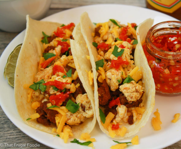 Who doesn’t love tacos? This is an easy breakfast that is packed full of flavor! The chorizo will add just the right amount of spice to your eggs.