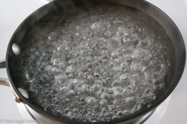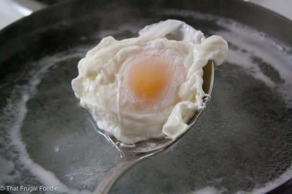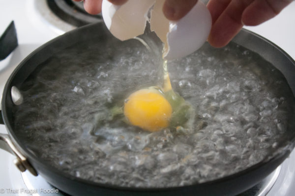 Once the water is boiling turn the heat down to medium-high so the water is lightly simmering. You don’t want a full rolling boil or the egg will overcook.