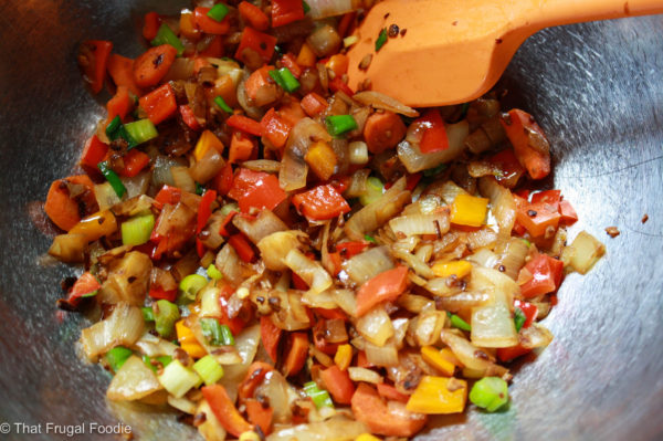 Depending on what veggies we have in the house there are a lot of great combos and variations we’ve made, but here is my favorite recipe! Leave out the sausage for a vegetarian version that is equally as delicious!
